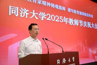 以教育家精神铸魂强师,谱写教育强国建设华章。今天(9月10日)是我国第41个教师节,当天下午,同济大学2025年教师节庆祝大会在四平路校区举行。校党委书记、中国工程院院士郑庆华等校领导出席,校党委常务副书记朱小杰主持。获得全国、上海市和同济大学重要荣誉称号的教师代表,从教30年教师、荣休教师、新进教师、一线教师代表等参加大会。郑庆华在讲话中向辛勤耕耘、无私奉献在教育教学、科学研究、管理服务一线的全校教职员工,致以节日的问候和崇高的敬意,向受到表彰的优秀教师表示热烈祝贺,向从教30年的老教师和荣休老教师表示衷心感谢,向近期加入同济大家庭的新教师表示诚挚欢迎。他表示,近年来,学校认真贯彻落实习近平总书记关于教育的重要论述、关于教师队伍建设的重要指示精神,激励广大教师做“有理想信念、有道德情操、有扎实学识、有仁爱之心”的“四有”好老师。希望全校教师坚守初心使命,大力弘扬教育家精神,传承老一辈教师的优良传统,为党育人、为国育才,为加快建设教育强国贡献力量。会议表彰了一批荣获国家、上海市重要荣誉的教师。李杰获评全国先进工作者,孙立军团队入选第四批“全国高校黄大年式教师团队”,吕西林获评上海市科技