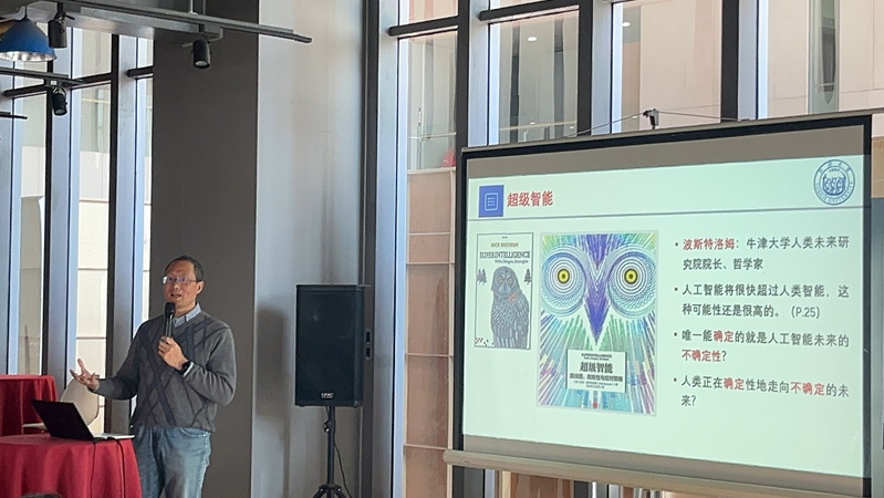 12月3日,由教师工作部主办的“AI:是终极威胁,还是最强工具?”午间沙龙在四平路校区教师发展活动中心举办,人文学院杜严勇教授担任主讲,近70名教师参加。